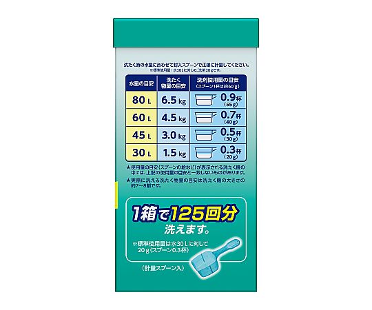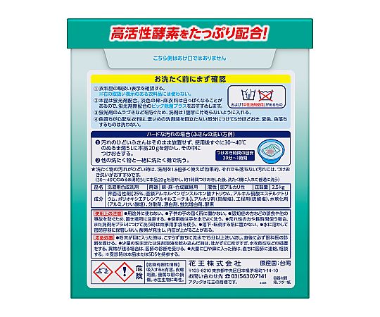 ●▼水軟化剤(アルミノけい酸塩)、アルカリ剤(炭酸塩)、分散剤、工程剤、漂白剤、蛍光増白剤、酵素