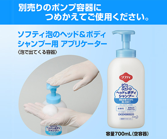 ●つめかえ容器には別売りの「ソフティ泡のヘッド&ボディシャンプー用アプリケーター」(62-3785-16)をご利用ください。