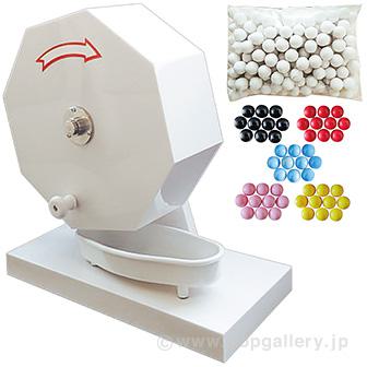 ●土台:H3×W30×D15cm●本体+皿重量:約1.2kg●セット内容:本体×1台・受け皿×1ヶ・玉×300球●玉内訳:白×250ヶ 黒・赤・水・黄・桃×各10ヶ●【注意】対応抽選球サイズ:Φ1.5cm