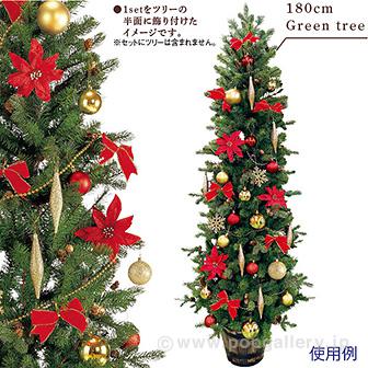 ●セット内容:7.5cmボール×4ヶ、5.5cmボール×12ヶ、10cmスノー×2ヶ、15cmドロップ×6ヶ、11cmリボン×6ヶ、14cmポインセチア×3ヶ、1.8mチェーン×2本