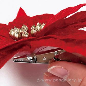 ●クリップで挟んで飾る上質のポインセチア3輪入り