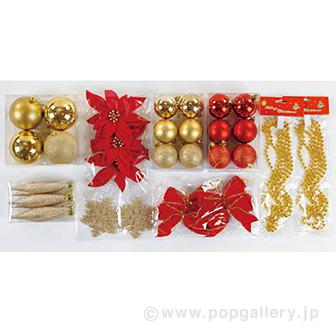 ●セット内容:7.5cmボール×4ヶ、5.5cmボール×12ヶ、10cmスノー×2ヶ、15cmドロップ×6ヶ、11cmリボン×6ヶ、14cmポインセチア×3ヶ、1.8mチェーン×2本