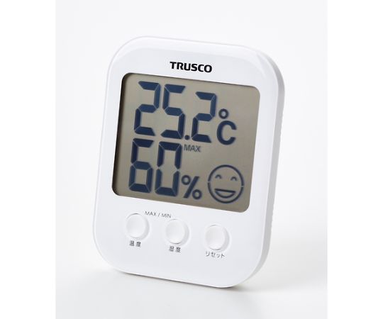 ●熱中症警告4段階、インフルエンザ警告2段階、温度の最高・最低自動メモリー、湿度の最高・最低自動メモリー、壁掛け用フック穴、磁石×1個、立てかけスタンド
