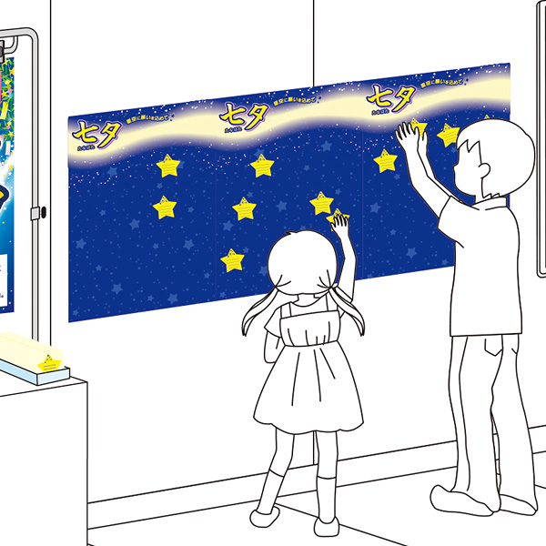 七夕笹が飾れなくても、天の川ポスターに星のシールでお願いごとを飾れます!省スペース七夕飾り!