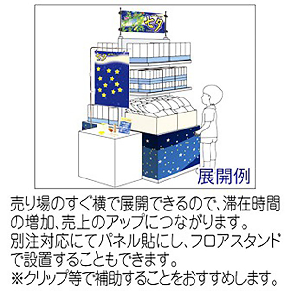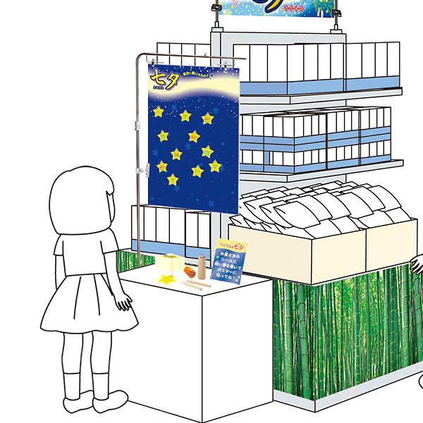 七夕 願い事ポスター・シールセットは、七夕売場やイベントスペースを手早く演出できる優秀アイテムです。ぜひ短冊や笹と一緒に飾って、来場者の願いごとを彩りましょう。