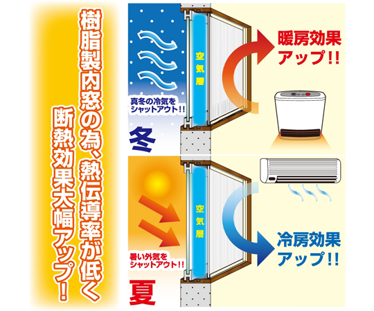 ●別売りの4mmパネル(64-9109-41/64-9109-44/64-9109-47)を使用し、簡易内窓を作成する事ができます