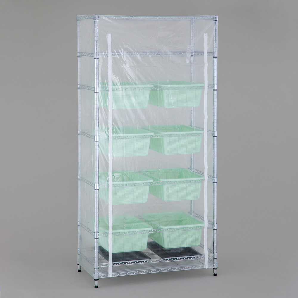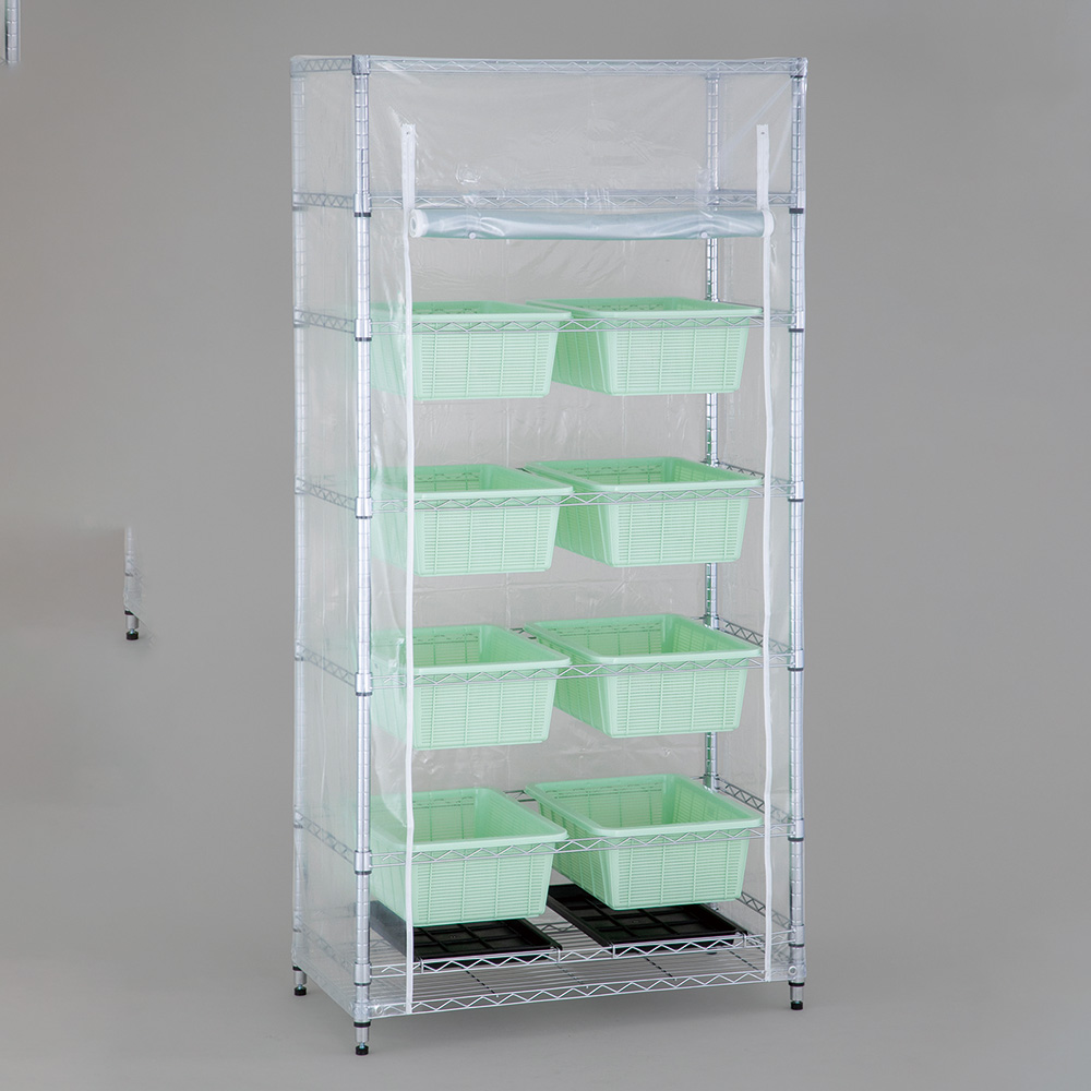 ●セット内容:ポール×4本、標準棚板×3枚、口の字バー×5枚、水受けトレー×2個、深型バスケット×8個 、ビニールカーテン×1枚
