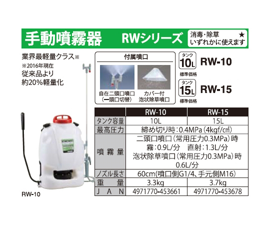 ●噴霧量:0.7L/分(消毒噴口時)/0.6L/分(除草噴口時)