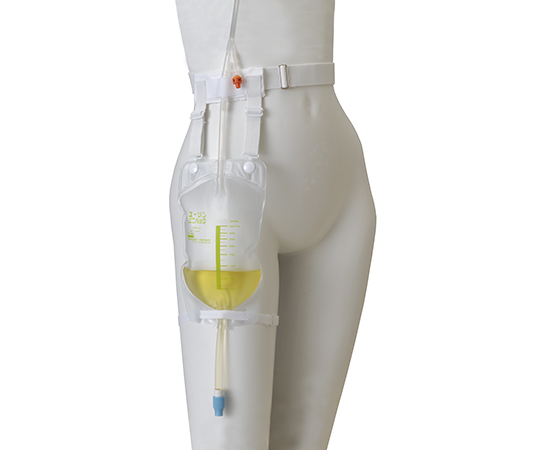 ●腰ベルトで吊り下げて太ももに装着する蓄尿バッグです。