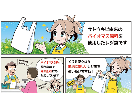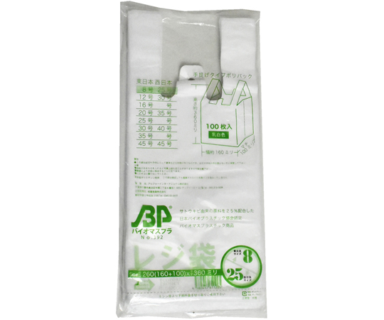 ●植物由来のバイオマスプラスチックを25%配合したレジ袋有料化対象外のレジ袋です。