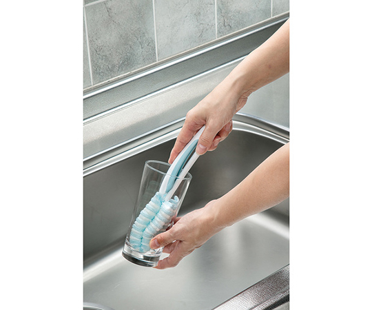 ●泡立ち抜群のモコモコネットで、コップ、ボトルの汚れをかき取ります。