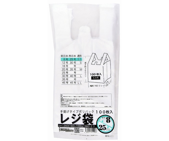 レジ袋乳白 東8西25号 160(260)×360(100枚/冊))