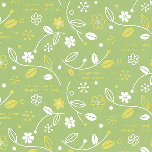 サイズが750×528mmの包装紙。材質は上質紙64gです。色は落ち着いた印象の緑ベースに文字と流れのあるやわらかな曲線の花のイラスト入りのデザイン。リボンやギフトシール、ショップラベルで簡単にアレンジもできます。雑貨店や洋菓子屋さんなどにおすすめの商品です。ギフトボックスなどのラッピングにいかがでしょうか。