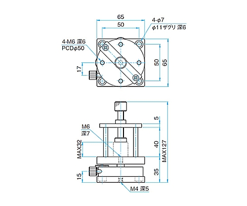 ●プリズム押えと支柱を取外したθαβ軸小型薄型ステージ(KKD-C)もご用意しています。