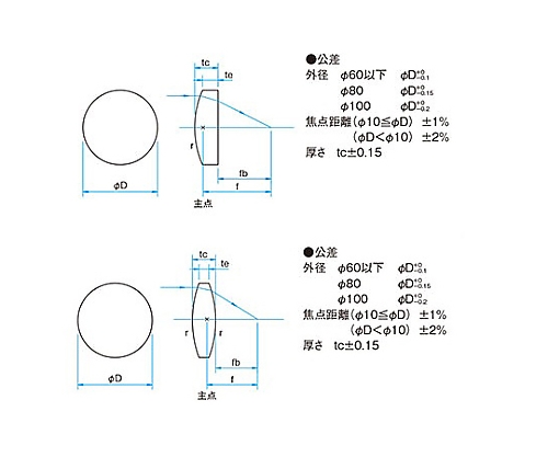 ●【<リーズナブル球面凸レンズ>共通仕様】