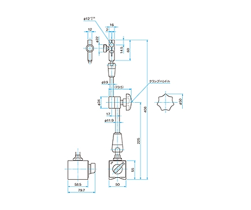 ●ホールド部はφ12のスリ割構造で、ロッドやポールを保持できます。