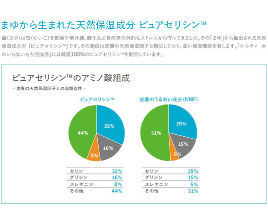 ●▼天然保湿成分(ピュアセリシンTM)配合。しかもアルコールフリー。皮膚をしっとり潤します。