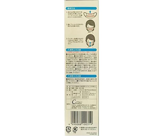 ●材質:本体/不織布(PP)、メガネ曇り抑制フィルター/PP・PE、耳ひも/ポリエステル・ポリウレタン、ノーズフィッター・口もとワイヤー/PE