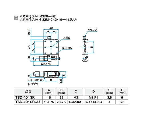 ●ネジピッチ0.25mmで操作する際には、六角レンチまたは別売のツマミ付六角レンチ(KCL)が必要となります。