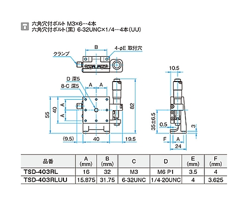 ●ネジピッチ0.25mmで操作する際には、六角レンチまたは別売のツマミ付六角レンチ(KCL)が必要となります。