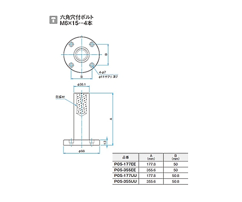 ●支柱(材質:ステンレス、表面処理:無)内部には、防振材が内蔵されており、防振台上面の振動等を吸収することができます。
