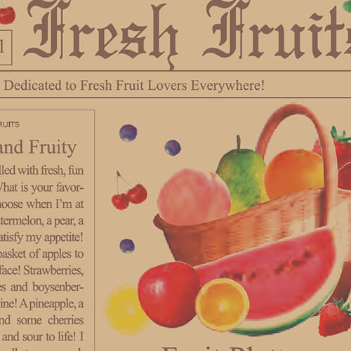 サイズが773×530mmのファンシーな包装紙。材質は純白紙45gです。英字新聞紙柄に色鮮やかなフルーツがあるデザイン。リボンやギフトシール、ショップラベルで簡単にアレンジもできます。雑貨店などにおすすめの商品です。ギフトボックスなどのラッピングにいかがでしょうか。