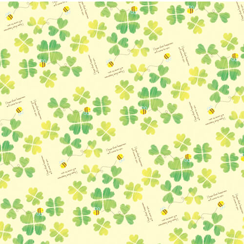 幸運のモチーフである四葉のクローバーや可愛らしいミツバチをあしらった優しい色合いのデザインです。