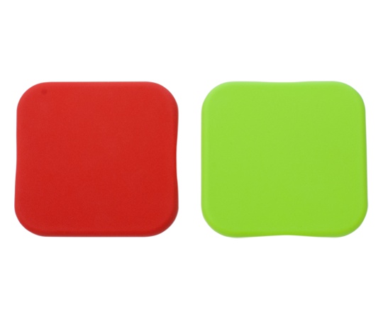 ●シリコンカバー2枚付き(グリーン、レッド各1枚)。裏返して使うとパスタなどをくぼみに載せて計量できます。シリコンカバーは取り外して洗えるので衛生的です。