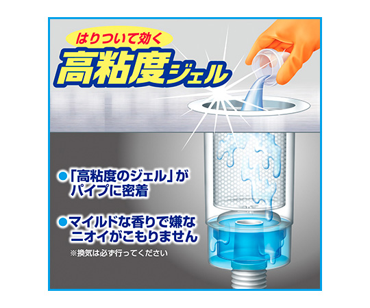 ●「高粘性のジェル」がパイプに密着し、排水パイプに付着した髪の毛・ヌメリを溶かして落とします。