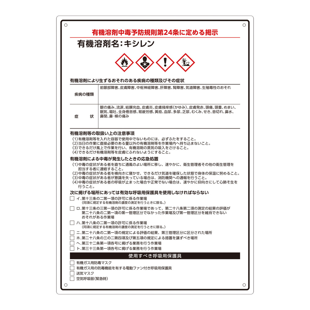 有機溶剤注意標識(A4サイズ)キシレン
