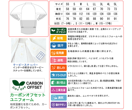●袖の内側にメッシュを付け、体毛などの衣服外落下を防ぐ。