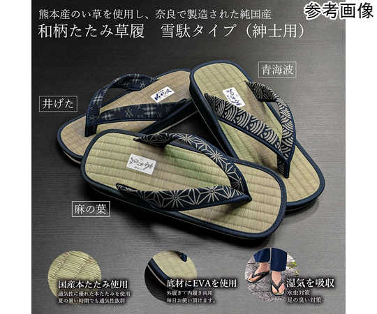 ●純国産品職人の手作業で作った本畳を使用した和柄草履、紳士用雪駄(せった)タイプ!ほんのり香るい草の香りが落ち着きます。