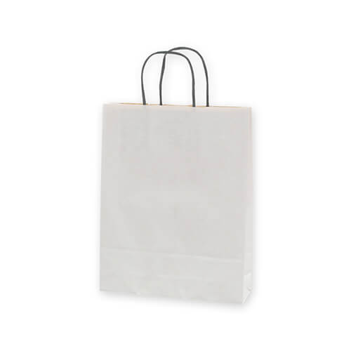 A4サイズの商品の収納に適した再生紙使用の手提げ紙袋。表は白、内側は茶色(クラフト)のリバーシブルペーパーが使用されています。内側のクラフトの色がほんのり透けて見える色感になっており、ショップラベルやギフトシールでのアレンジもしやすいです。持ち手には黒色の丸紐を採用しています。紙袋を生産する工場で排出されるヤレ紙(損紙)を廃棄せず、リサイクルしてできた再生紙を使用した環境配慮型商品です。