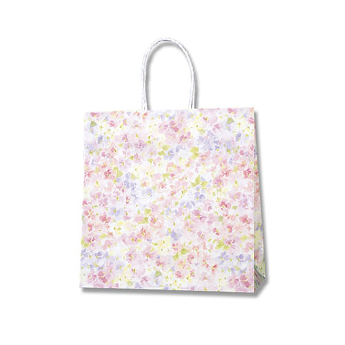 落ち着いた雰囲気の、淡い花柄デザインの手提げ紙袋。