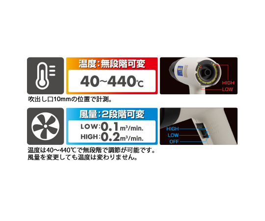 ●風速:230m/min.(LOW) 460m/min.(HIGH)