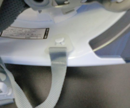 ●ヘルメットへの取り付部が穴でヘルメットに引っ掛ける様に取付ます。