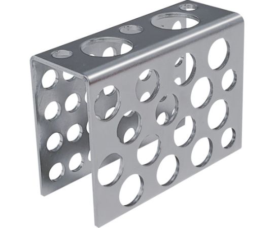 ●3面に異なる径の穴が空いており、遠沈管やマイクロチューブを立てられるラックです。