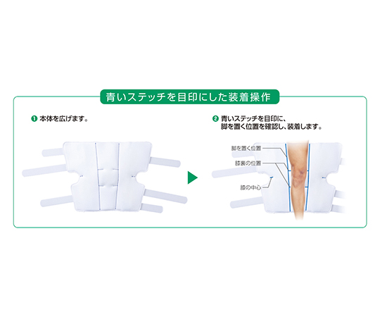 ●脚や膝を置く目印として本体生地に青いステッチが搭載されています。