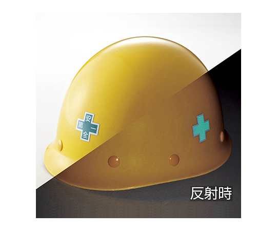 ●緑十字型の反射式ステッカーに安全第一が表記されています。
