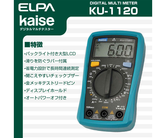 ●付属品:単四形乾電池/2本(テスト用 内蔵)、テストリード/1組、ホルスター、取扱説明書、スペアヒューズ(0.2A/250V(Φ5×20mm)、10A/250V(Φ5×20mm))/各1本